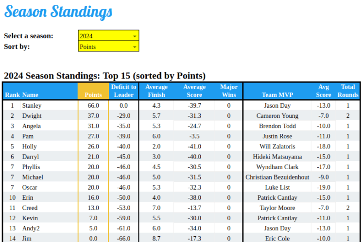 Option A – PGA Tour Betting League (multi-event): For the ability to run a betting pool for any PGA event and aggregate league results into a “Betting Pool Season” or “Fantasy Golf Season” then this option is the best bang for your buck. When next season rolls around, simply update your “Season name” and run it back within the same spreadsheet!